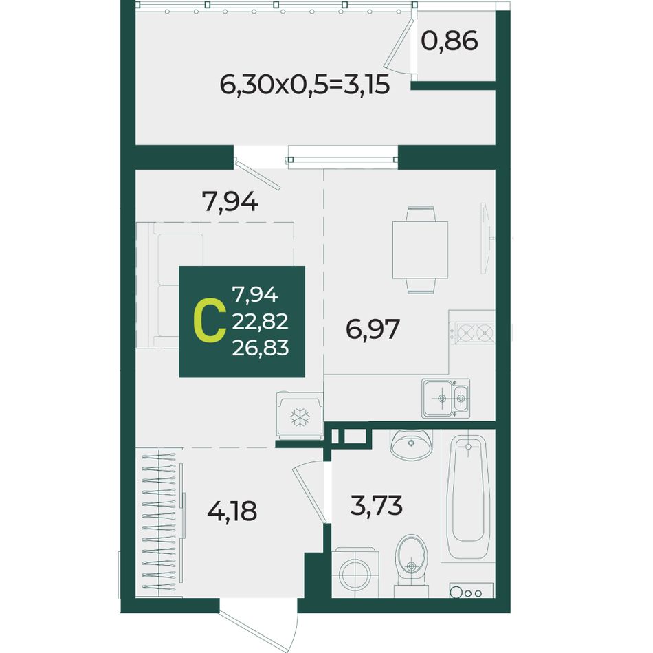 Студия — 26,83 м² 7/18 эт. в Образцово