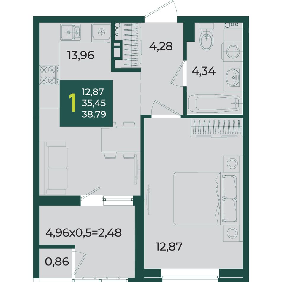 1-комнатная — 38,79 м² 6/18 эт. в Образцово