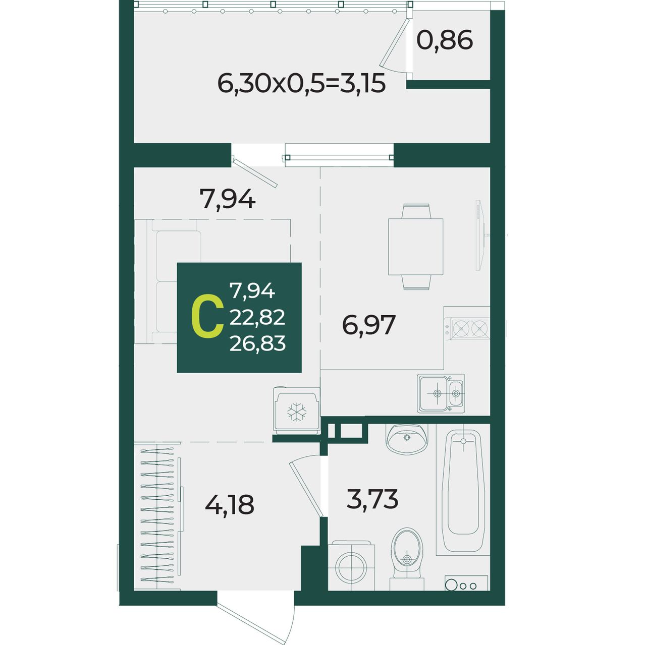 Студия — 26,83 м² 6/18 эт. в Образцово