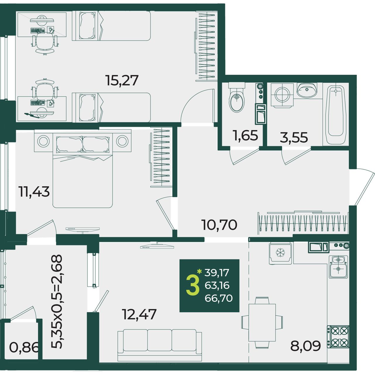 Общая площадь66,7 м²