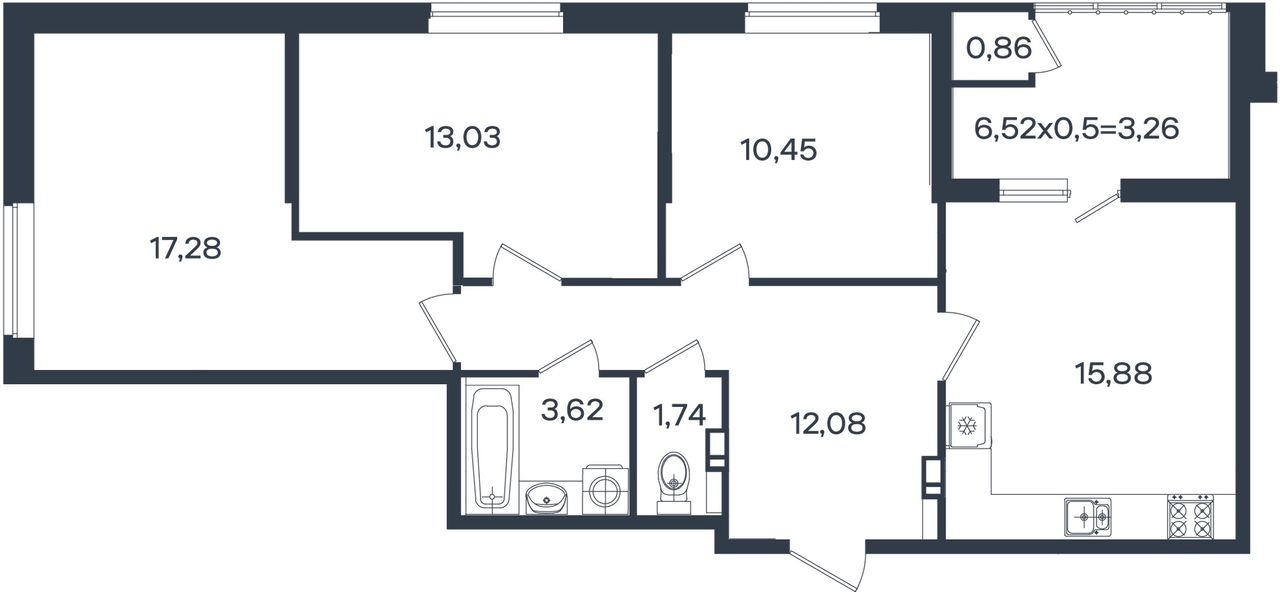 3-комн. | 72 - 79 м² | 7,9 - 8,5 млн ₽ |