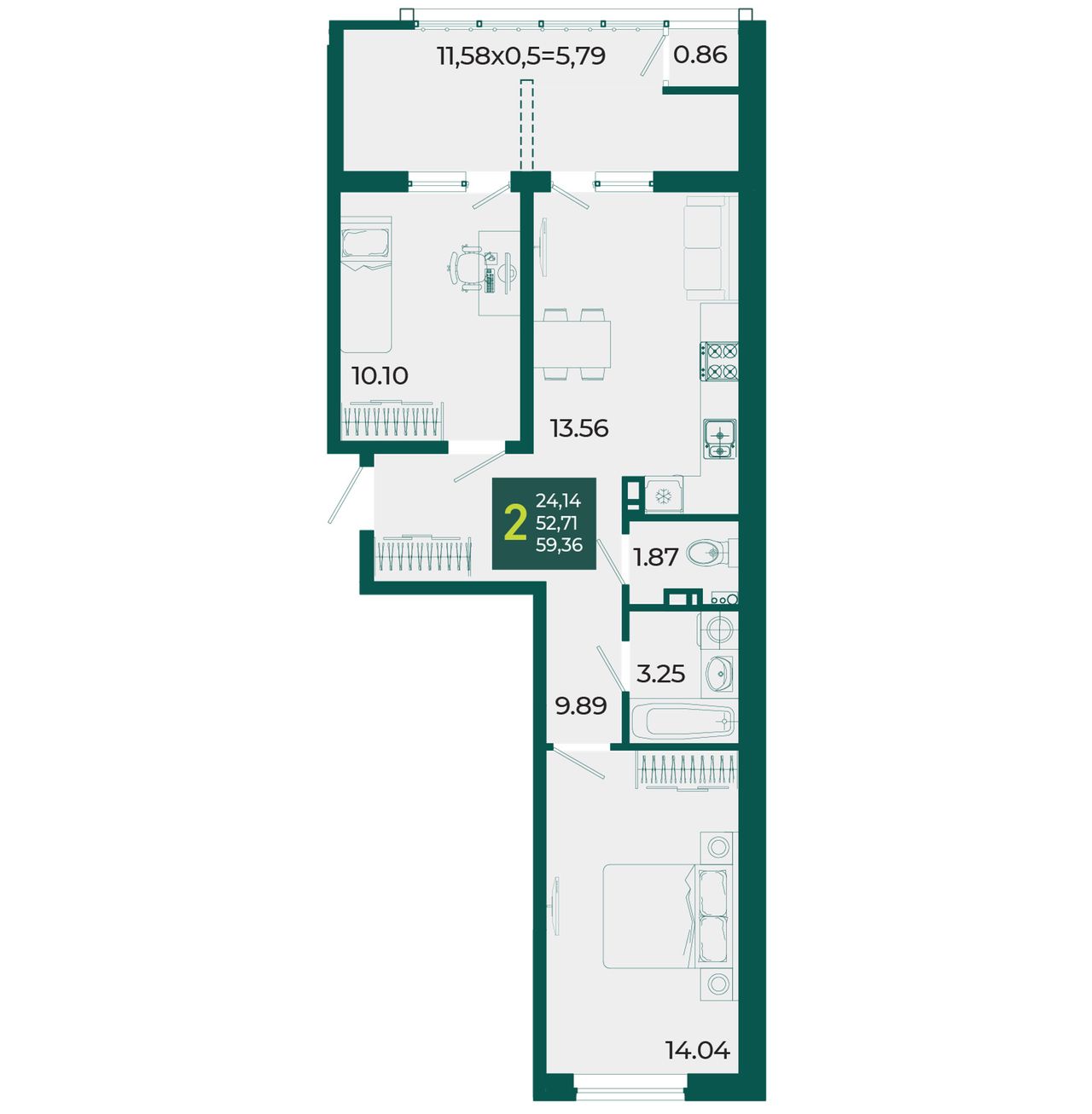 Общая площадь59,36 м²