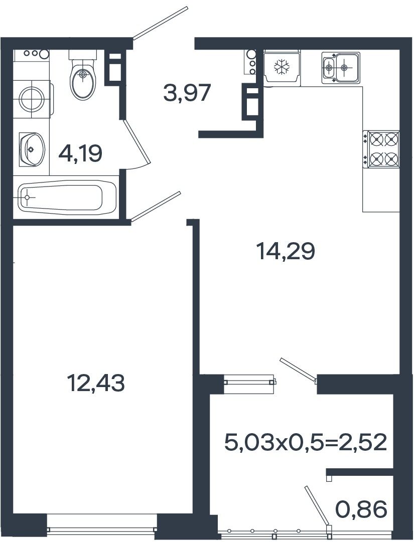 1-комн. | 35 - 43 м² | 4,9 - 5,9 млн ₽ |