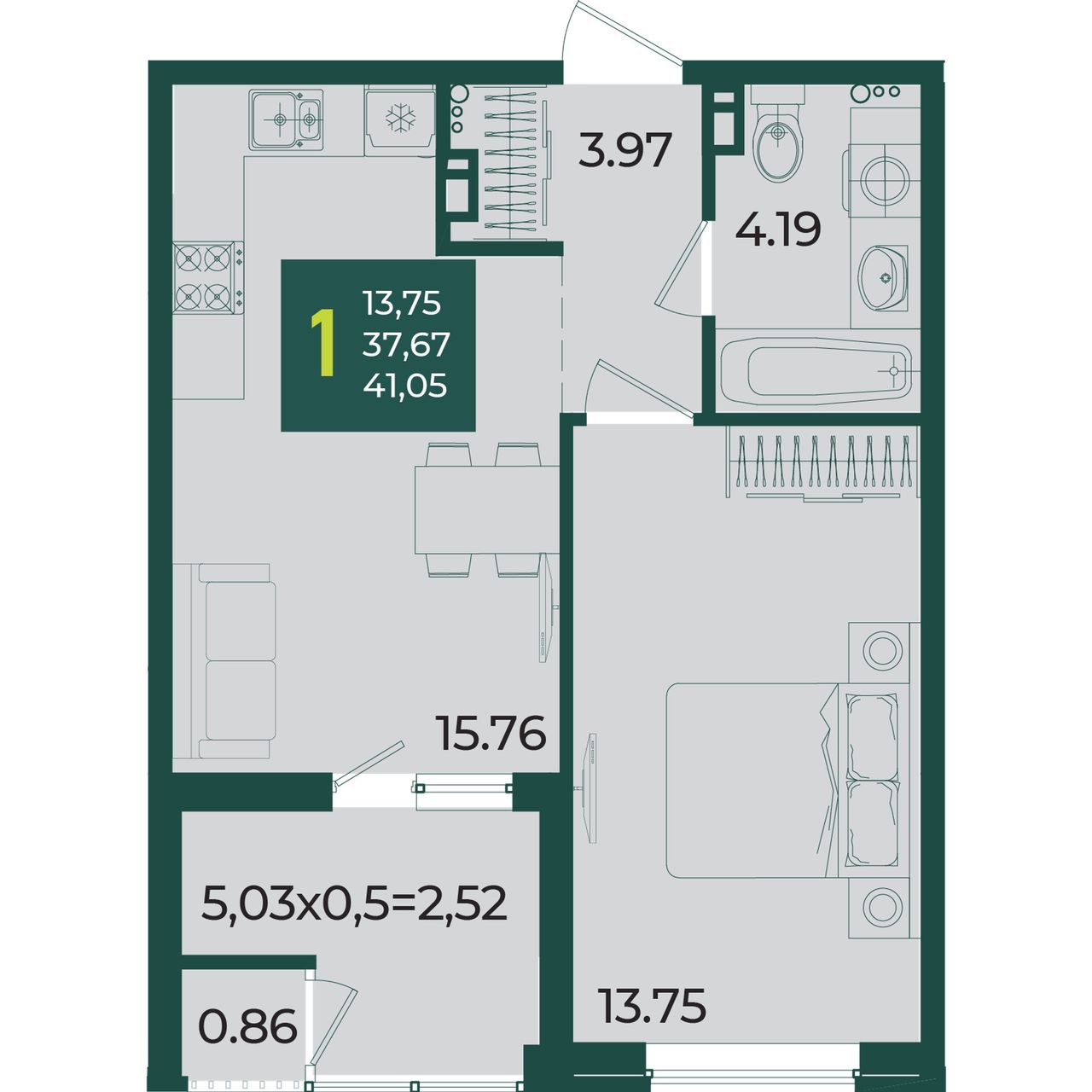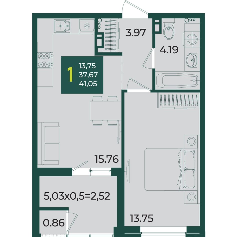 Общая площадь41,05 м²