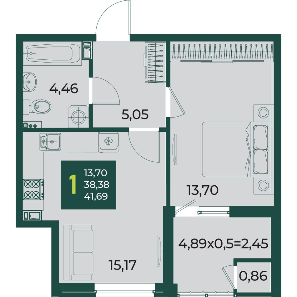 Общая площадь41,69 м²