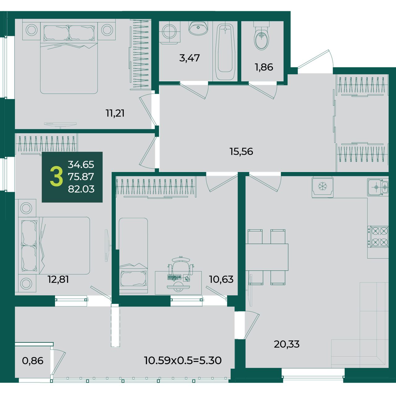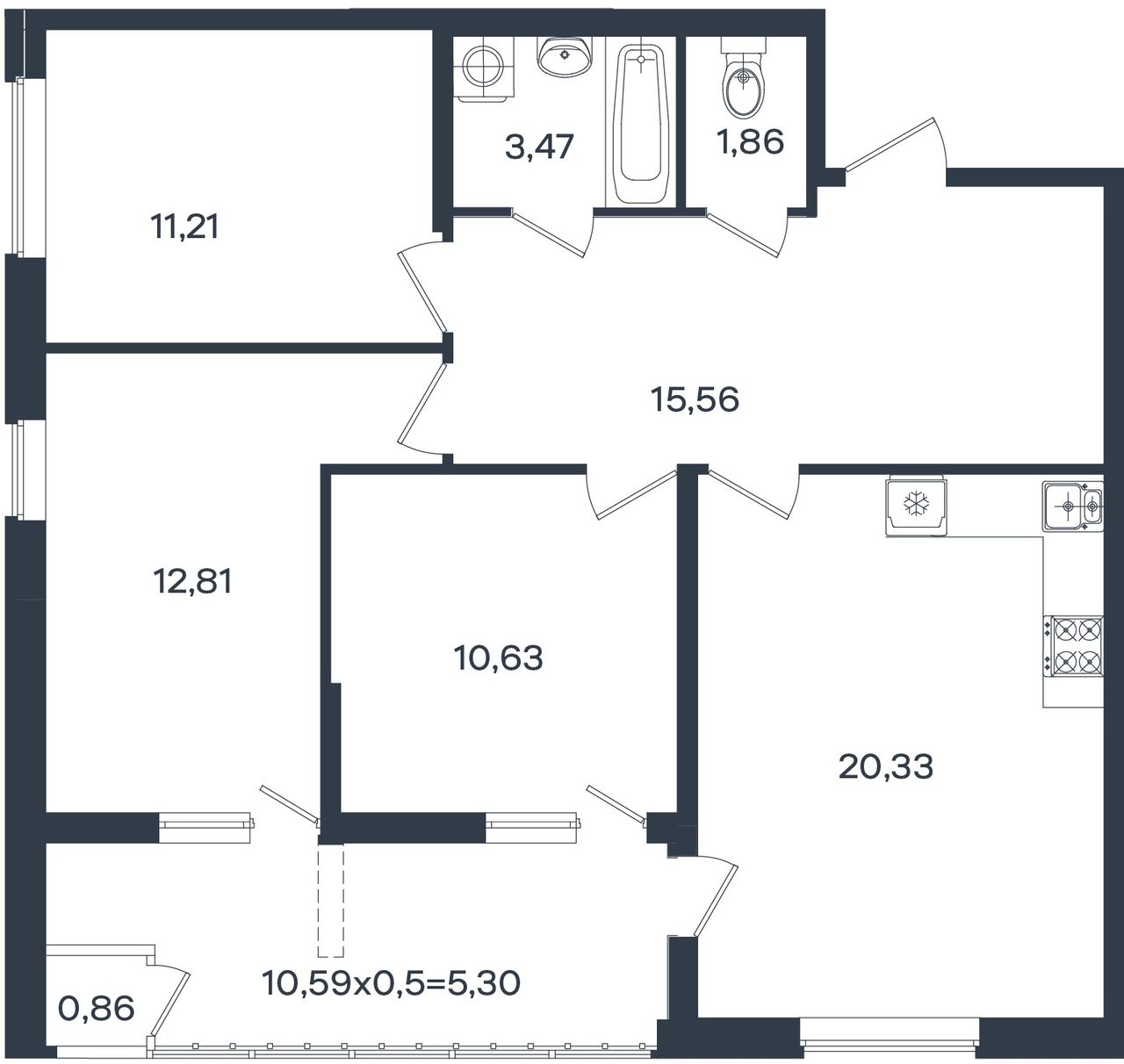3-комнатная — 82,03 м² 2/18 эт. в Образцово
