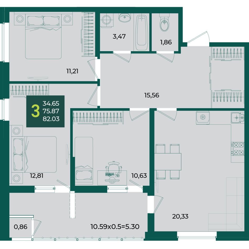 Общая площадь82,03 м²