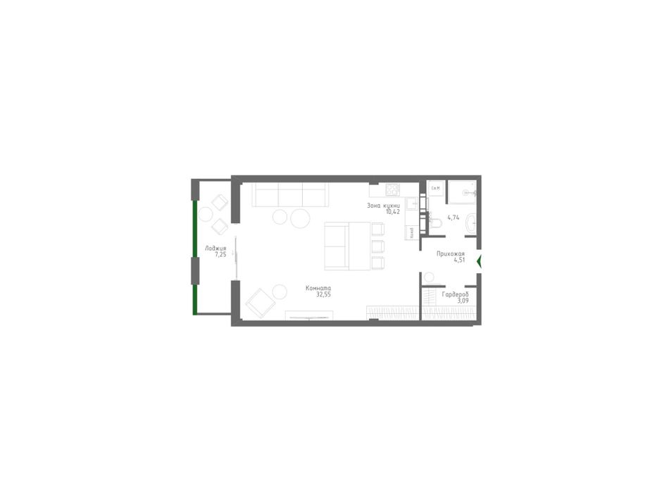 1-комнатная — 62,38 м² 2/12 эт. в Park Plaza (Парк Плаза)