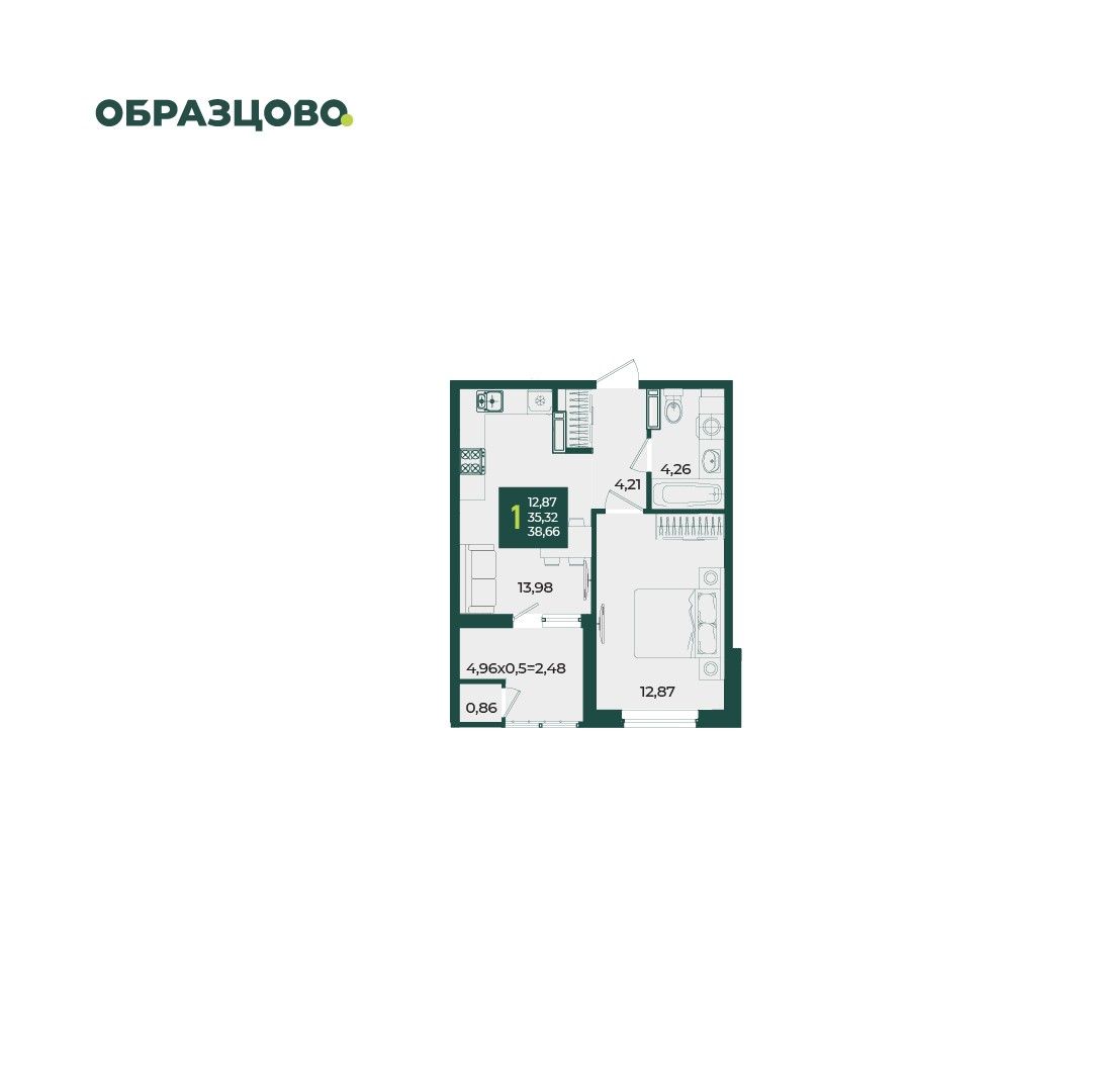 1-комнатная — 38,66 м² 13/18 эт. в Образцово