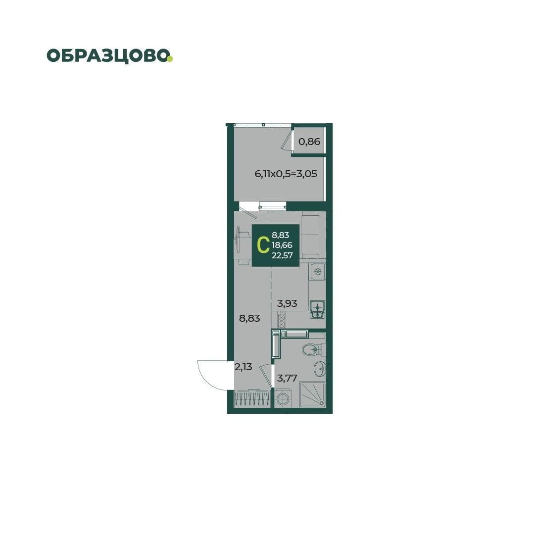 Студия — 22,57 м² 13/18 эт. в Образцово
