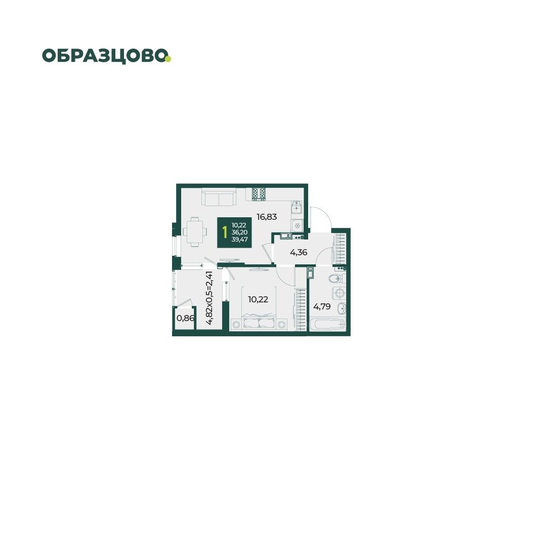 1-комнатная — 39,47 м² 6/18 эт. в Образцово
