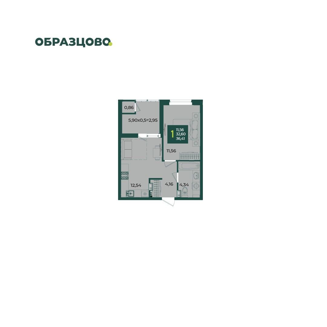 1-комнатная — 36,41 м² 3/18 эт. в Образцово