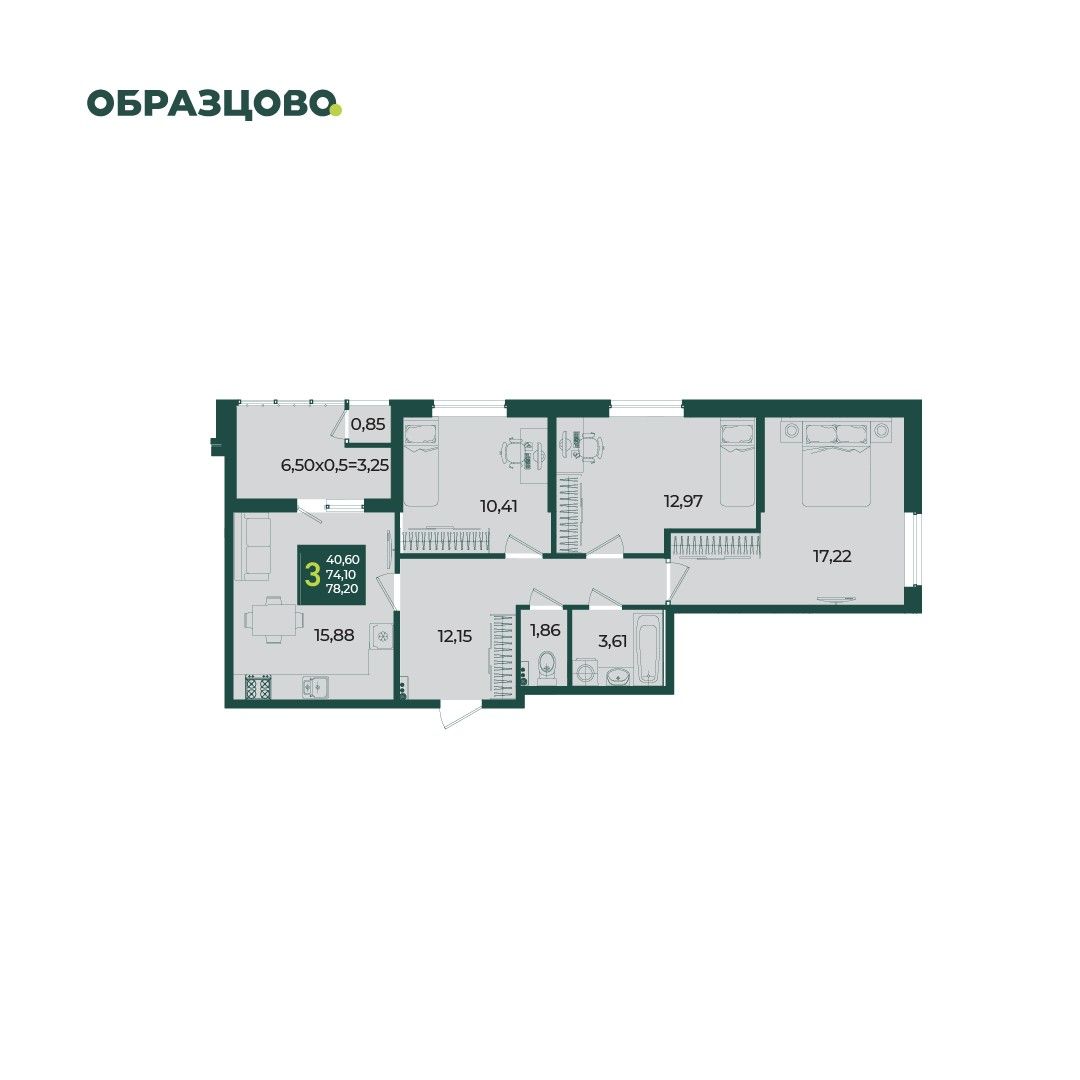 3-комнатная — 78,2 м² 2/18 эт. в Образцово