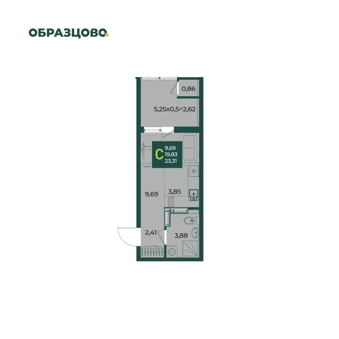 Общая площадь23,31 м²