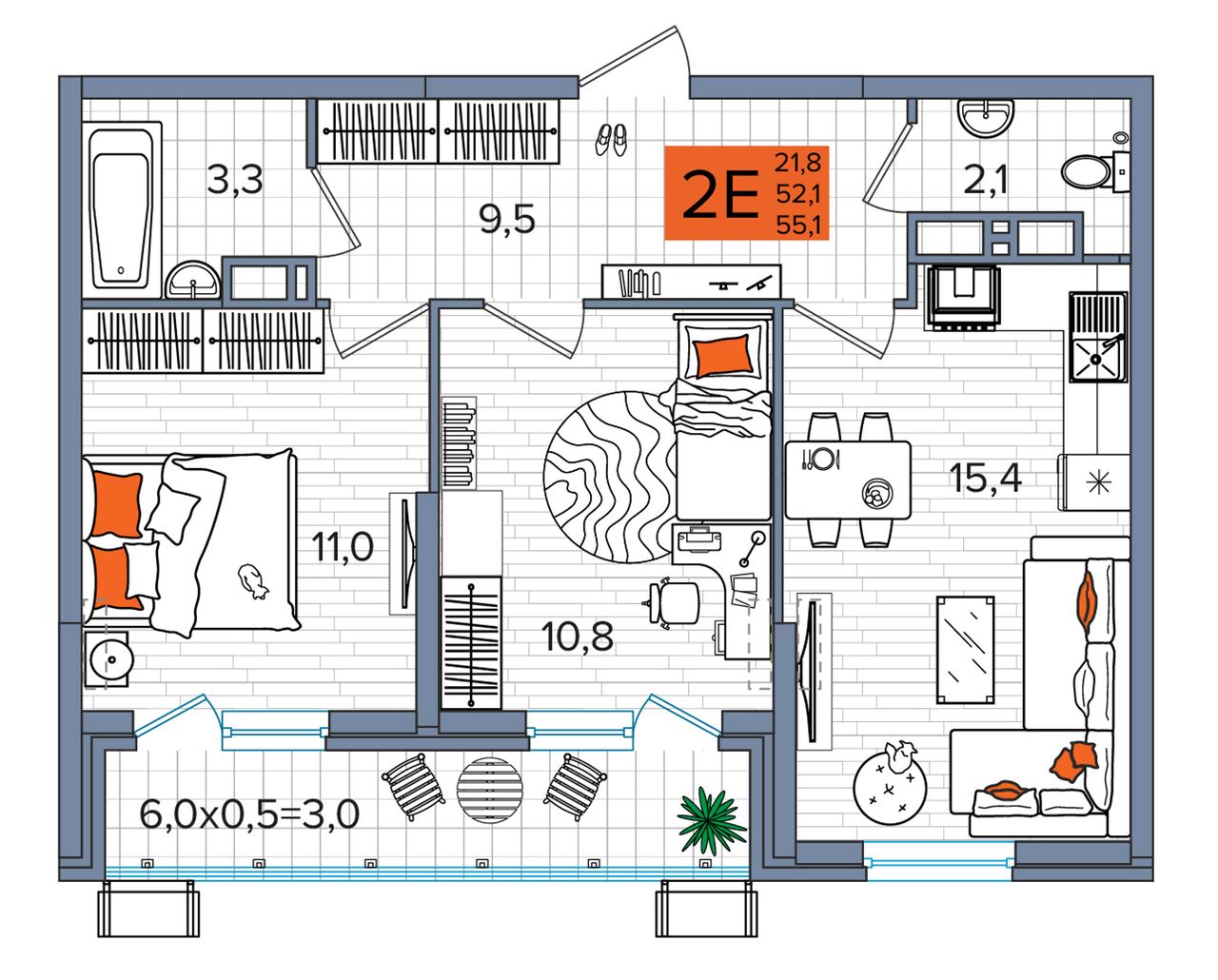 Общая площадь55,1 м²