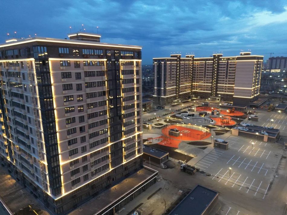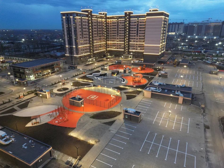 Единый европейский стиль фасадов, благоустроенная территория, собственный детский садик и школа, ландшафтное озеленение, подземный и многоуровневый паркинг для автомобилей.
