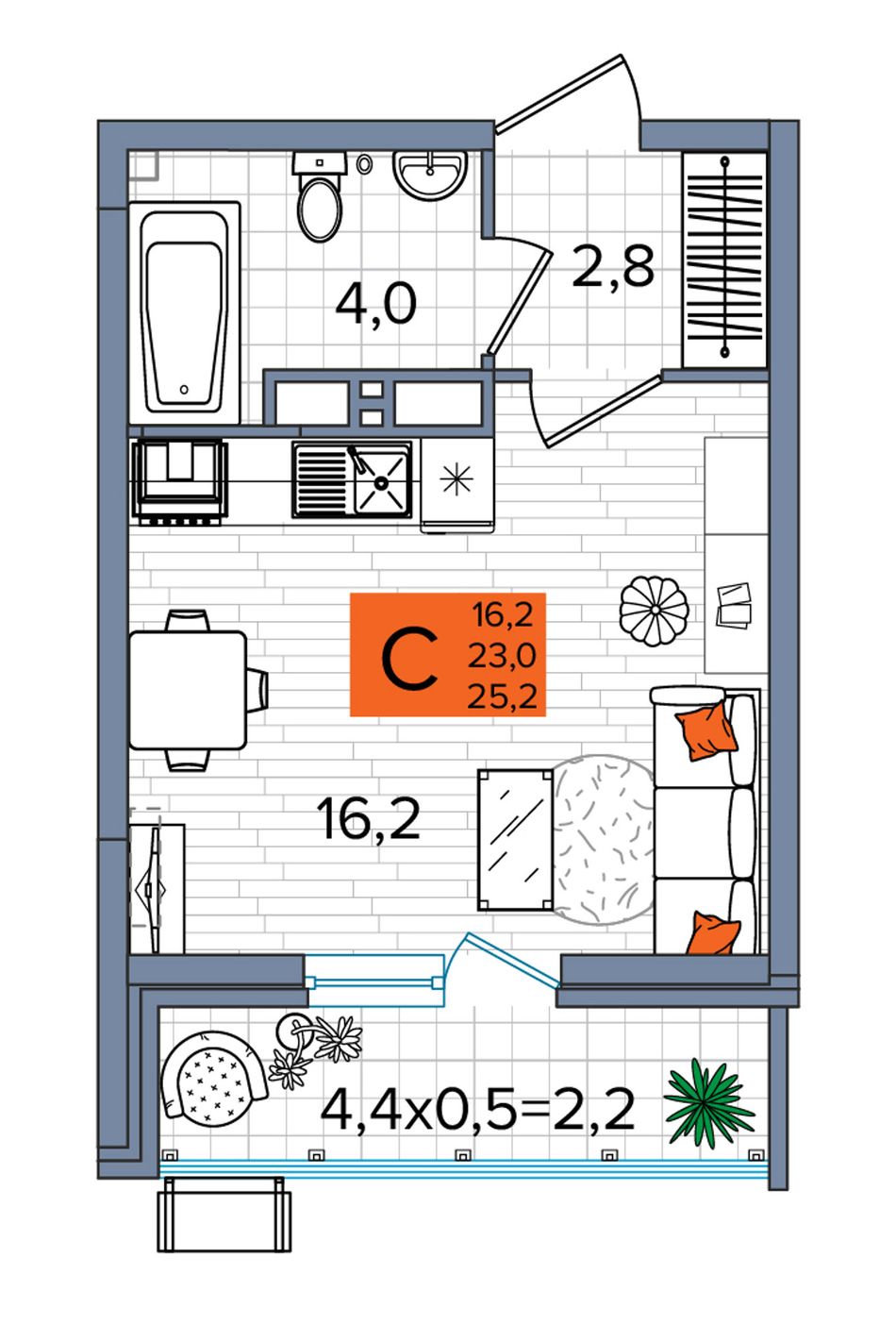Общая площадь25,2 м²