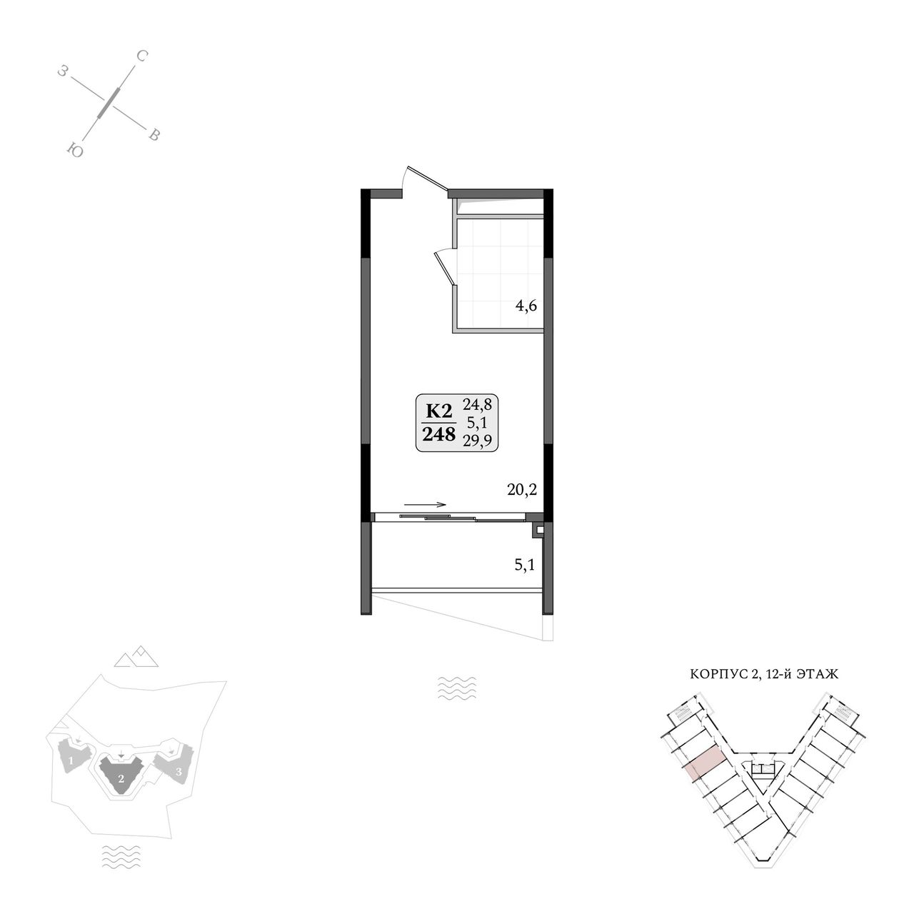 Продаются апартаменты № 2/248 площадью 29,9 м2