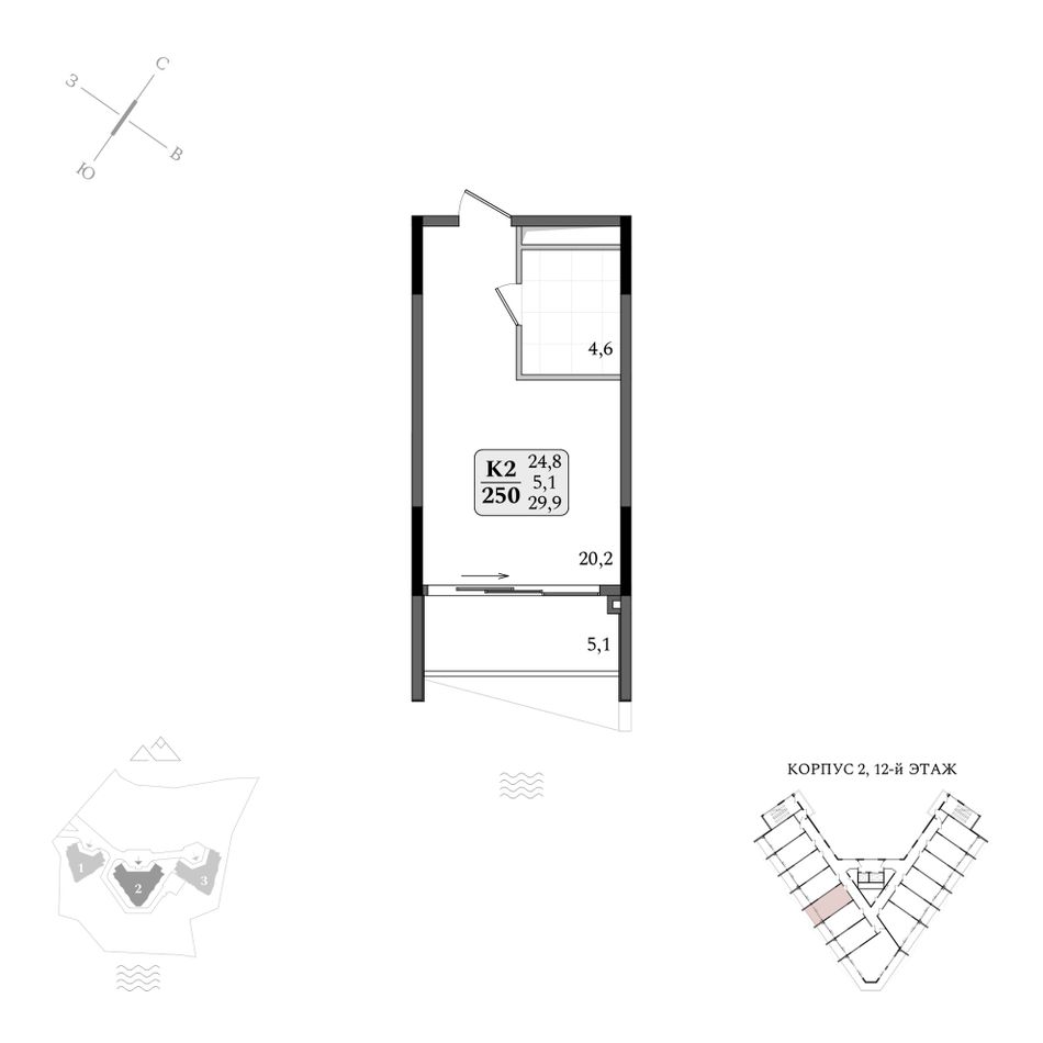 Продаются апартаменты № 2/250 площадью 29,9 м2