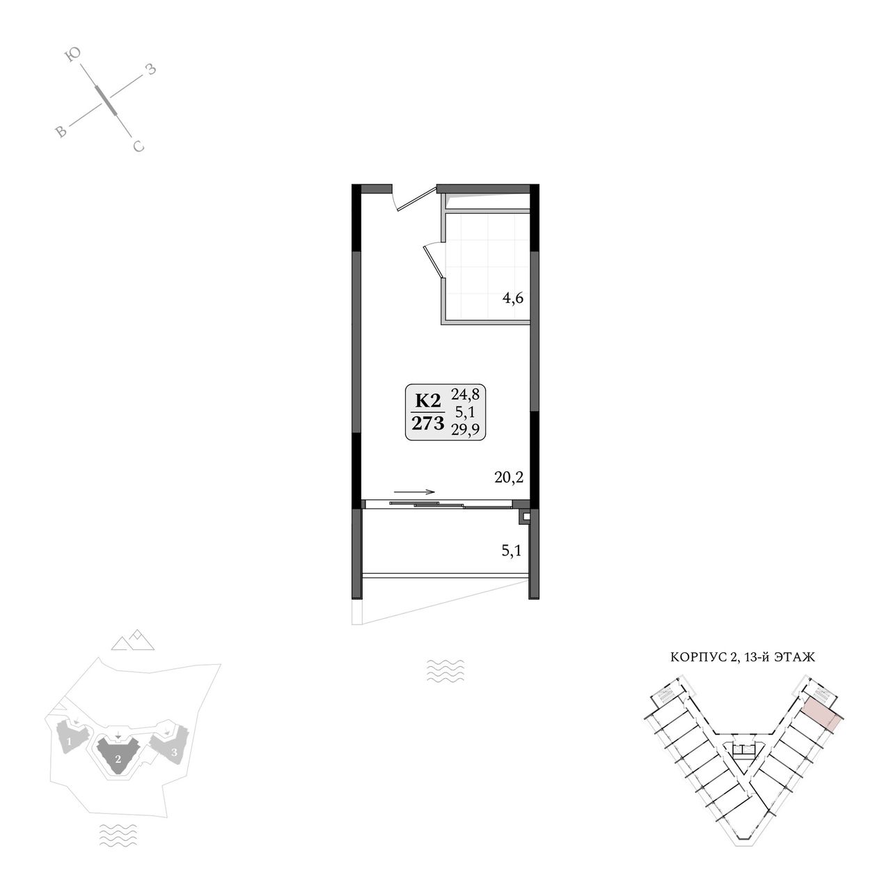 Продаются апартаменты № 2/273 площадью 29,9 м2