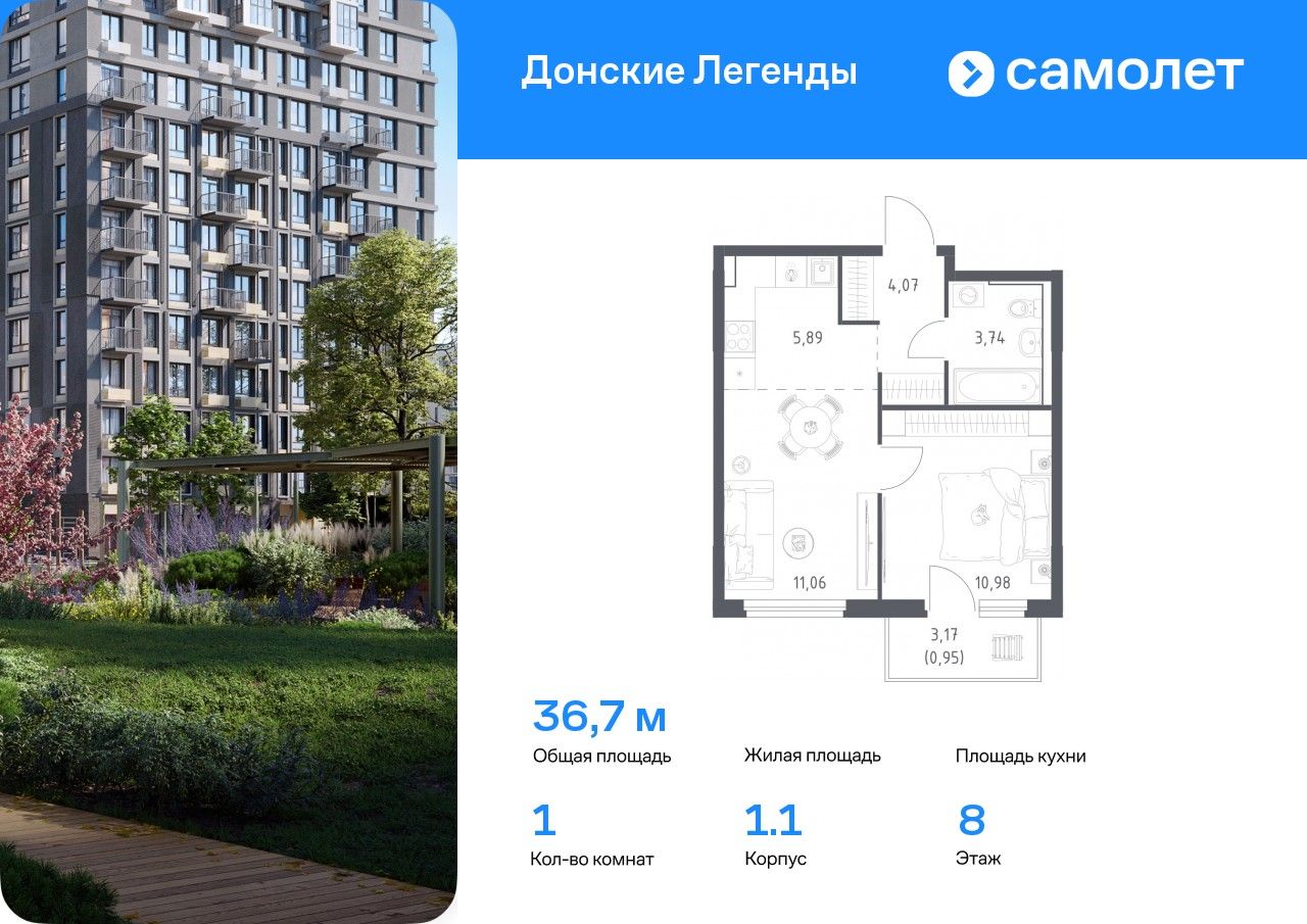 1-комнатная — 36,69 м² 8/17 эт. в Донские легенды