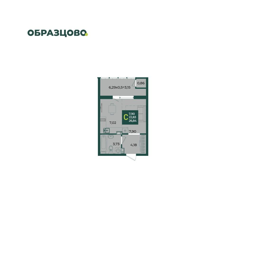 Студия — 26,84 м² 8/18 эт. в Образцово