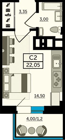 Студия | 22 - 31 м² | 3,2 - 4,1 млн ₽ |