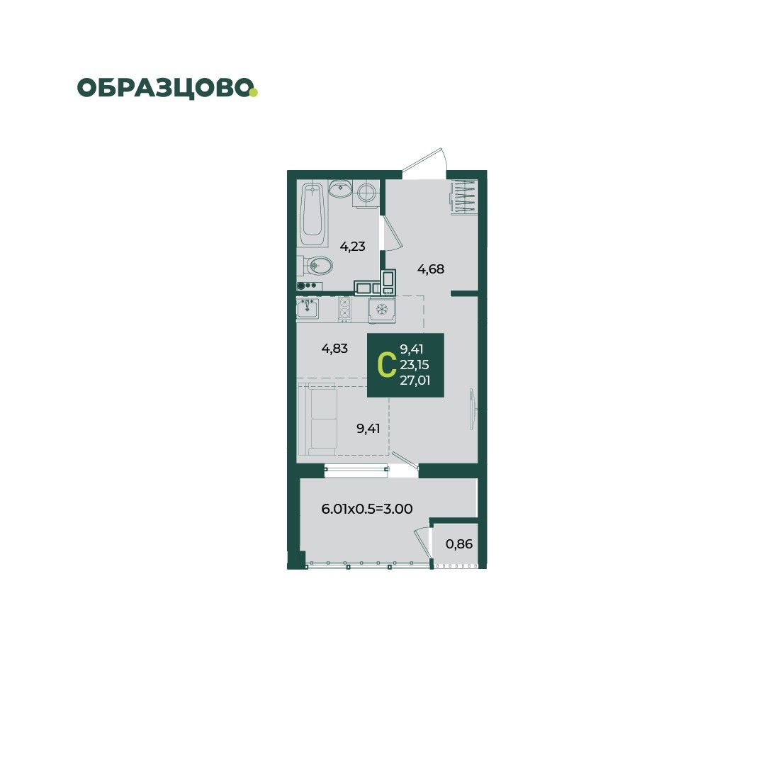Студия — 27,01 м² 8/18 эт. в Образцово