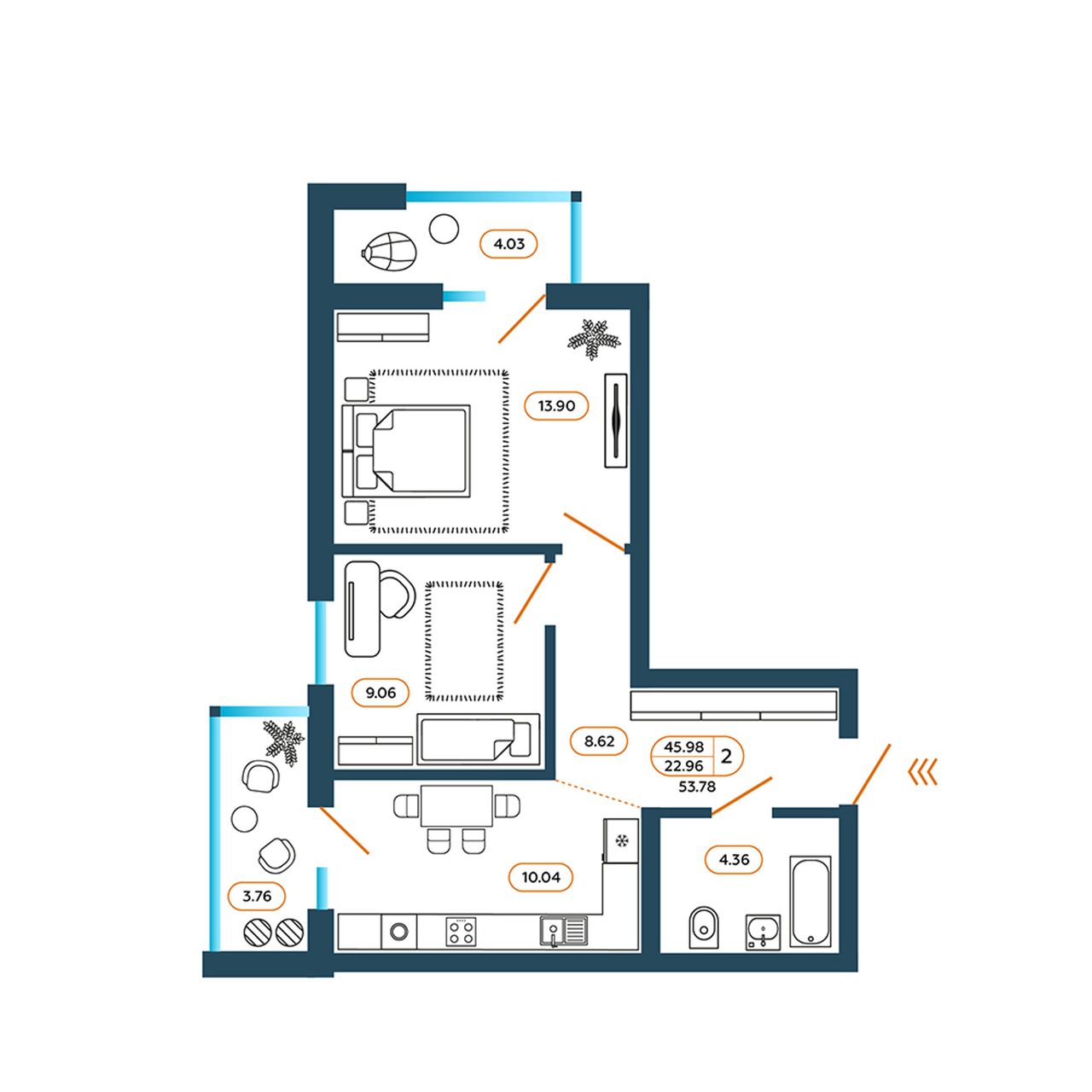Жилая площадь22,96 м²