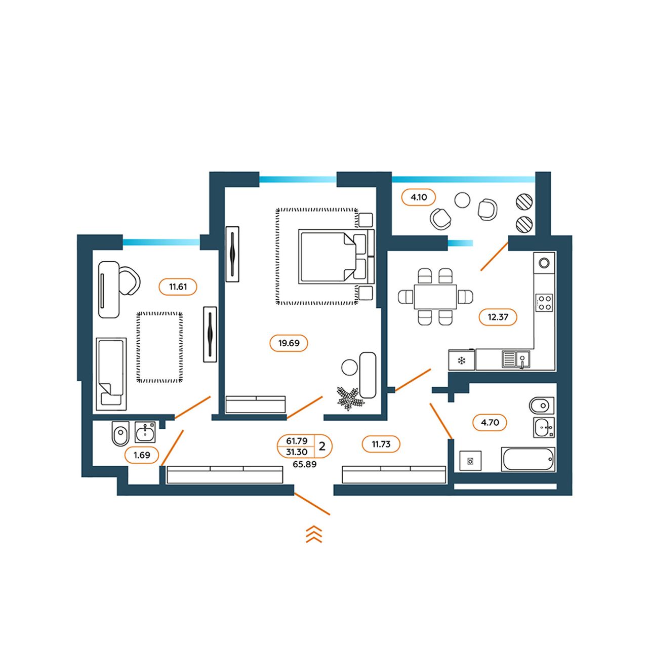 2-комнатная — 66,7 м² 8/14 эт. в Пульс