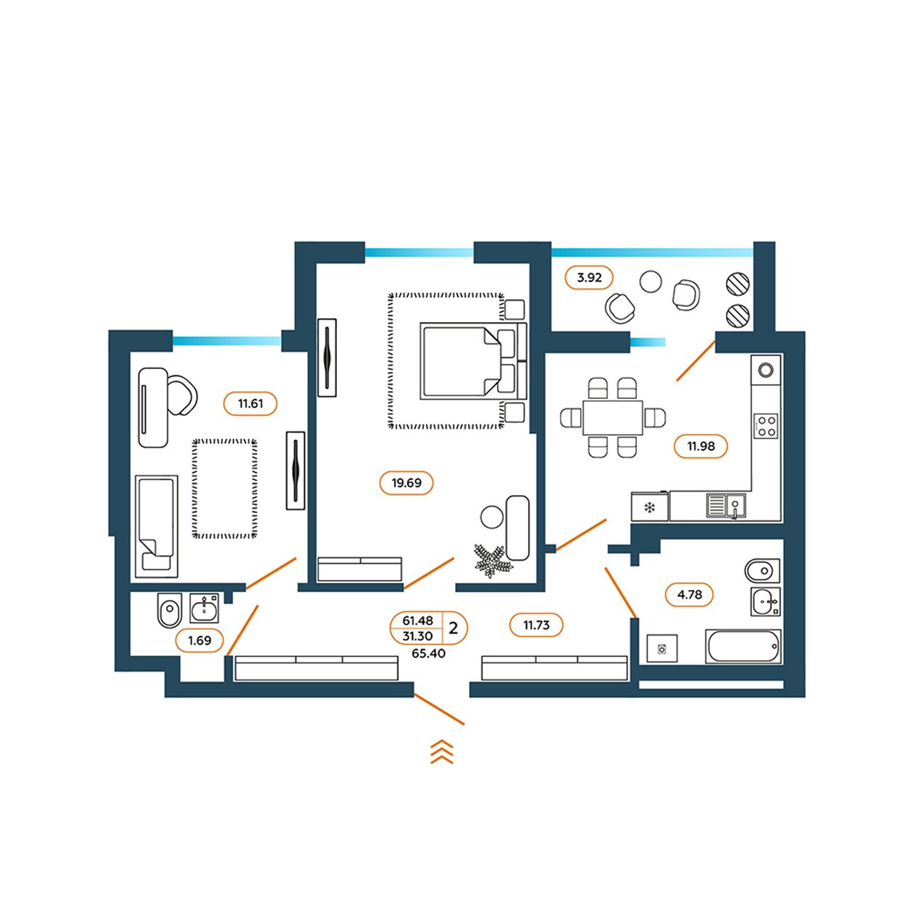 2-комнатная — 66,2 м² 14/14 эт. в Пульс