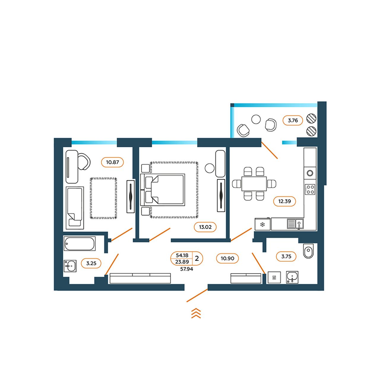 2-комнатная — 59,1 м² 14/14 эт. в Пульс