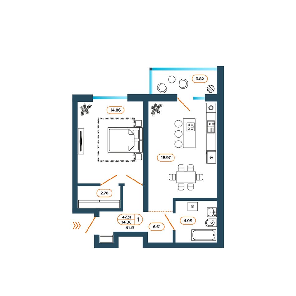 Жилая площадь14,86 м²
