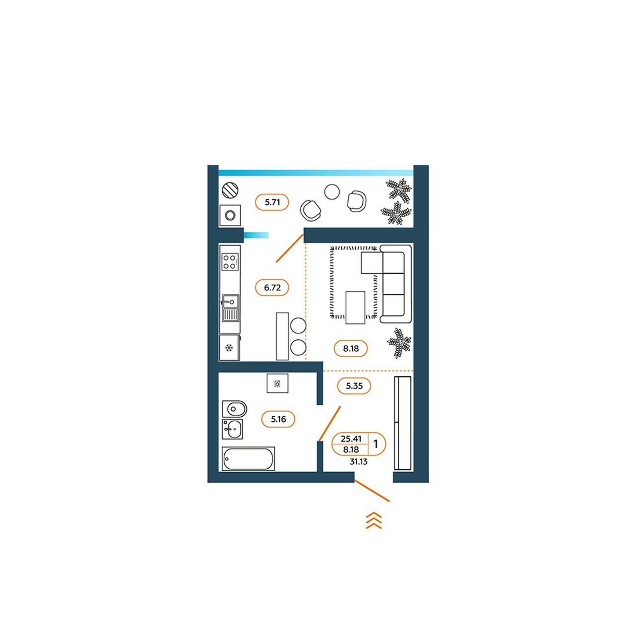 Общая площадь31,3 м²