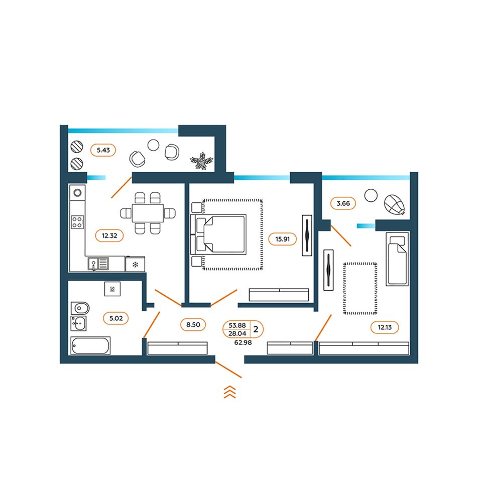 2-комнатная — 63,8 м² 13/13 эт. в Пульс