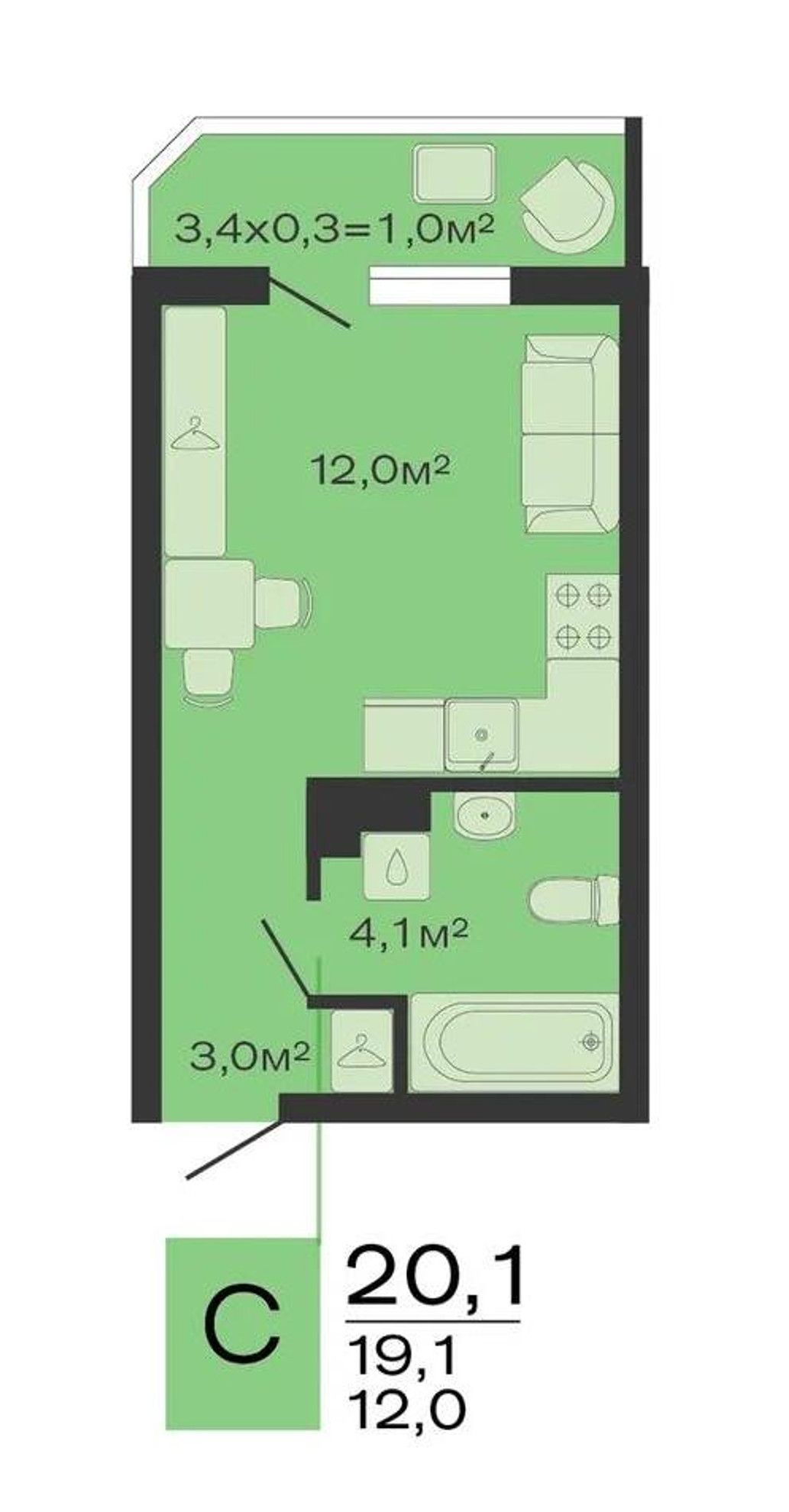 Общая площадь20,1 м²