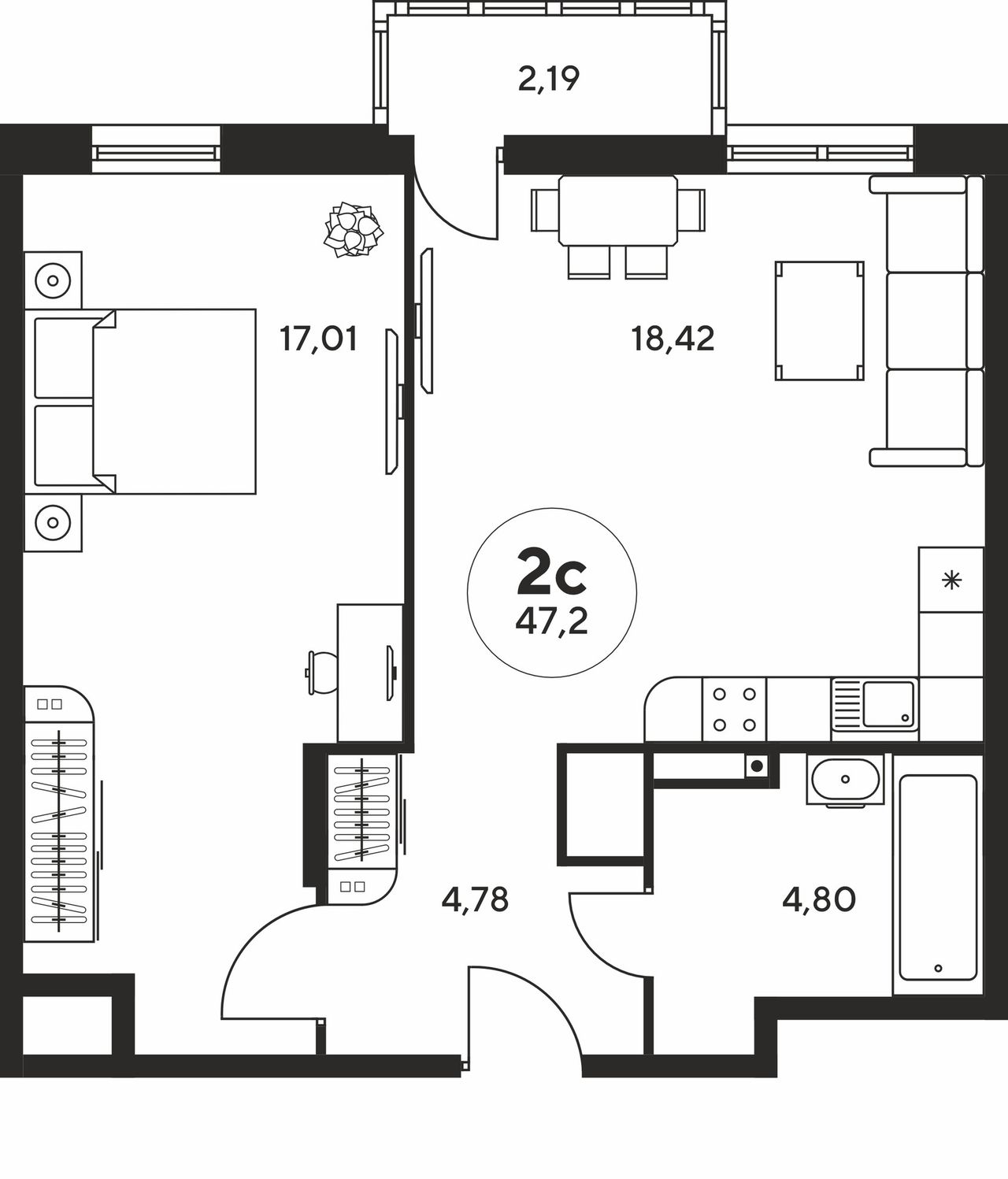 Общая площадь47,05 м²