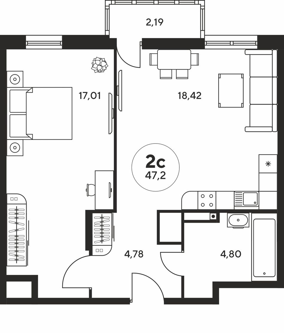 | Студия | 23 - 29 м² | 3,2 - 4,8 млн ₽ |