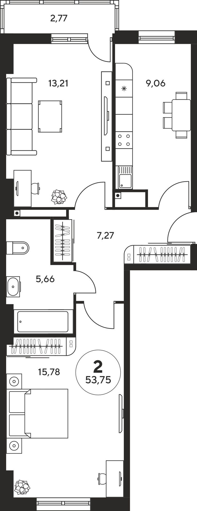 2-комнатная — 53,6 м² 23/25 эт. в Соколова, 68