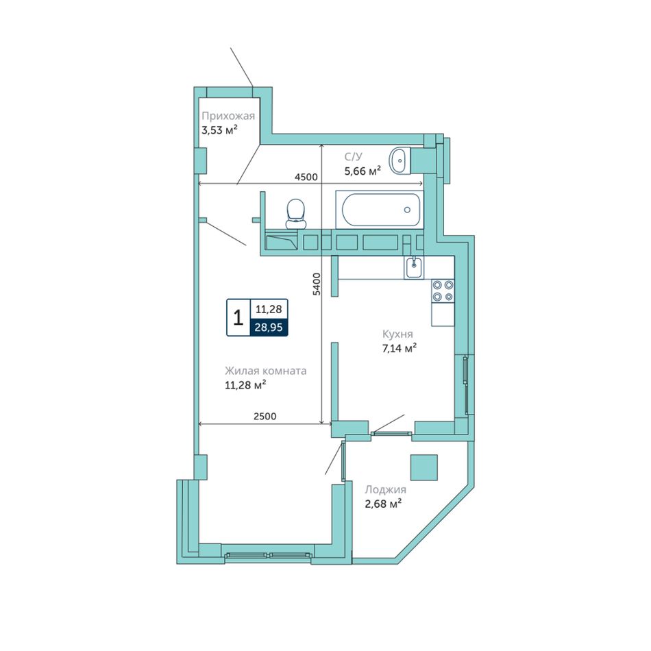 1-комнатная квартира №66 в ЖК «Семейный» площадью 28.95 м2 расположенная на 11 этаже.