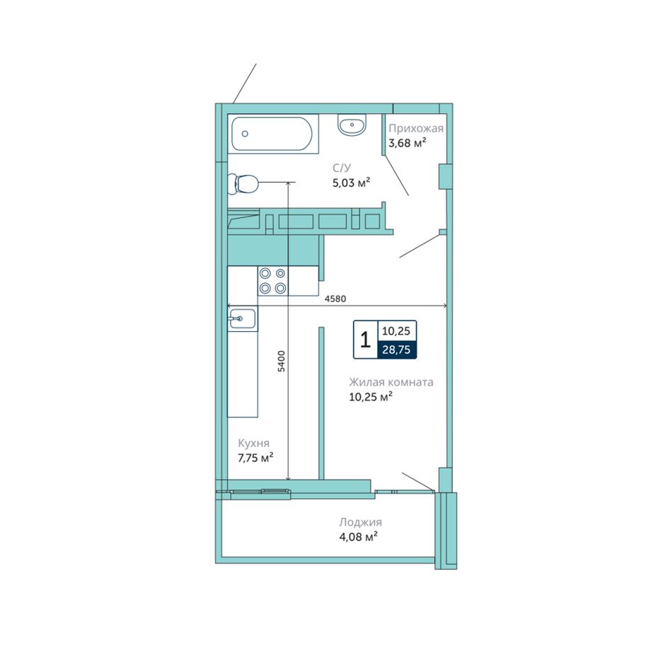 1-комнатная квартира №60 в ЖК «Семейный» площадью 28.75 м2 расположенная на 10 этаже.