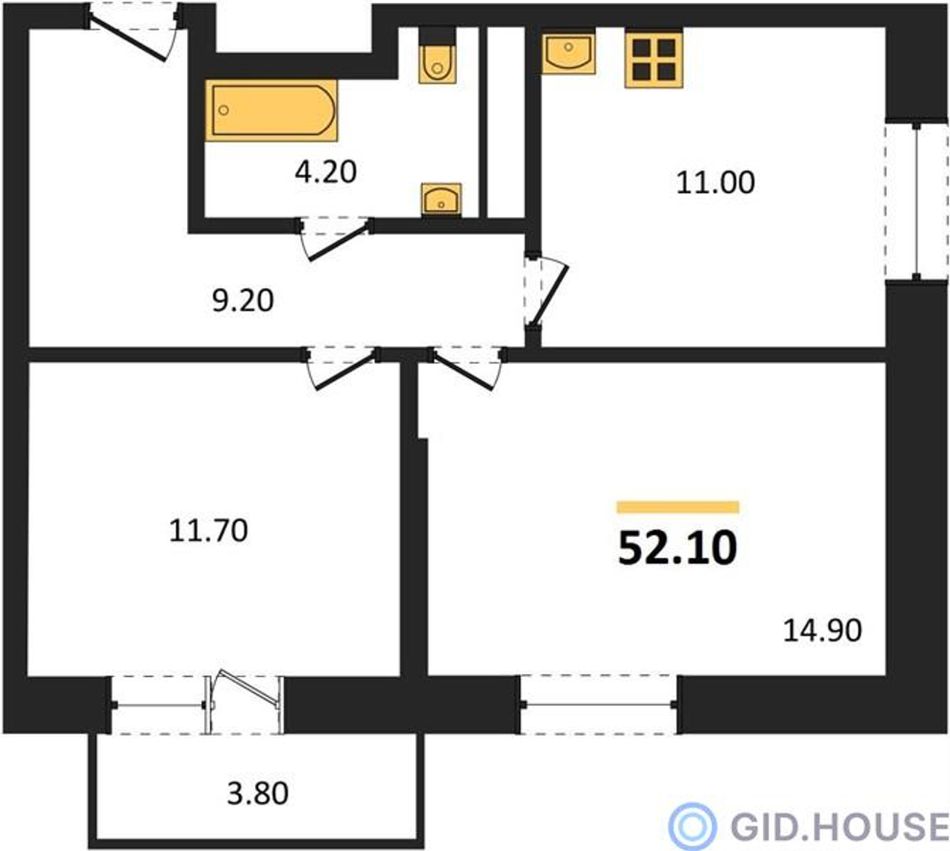 2-комнатная — 52,1 м² 11/22 эт. в SkyPark (Скайпарк)