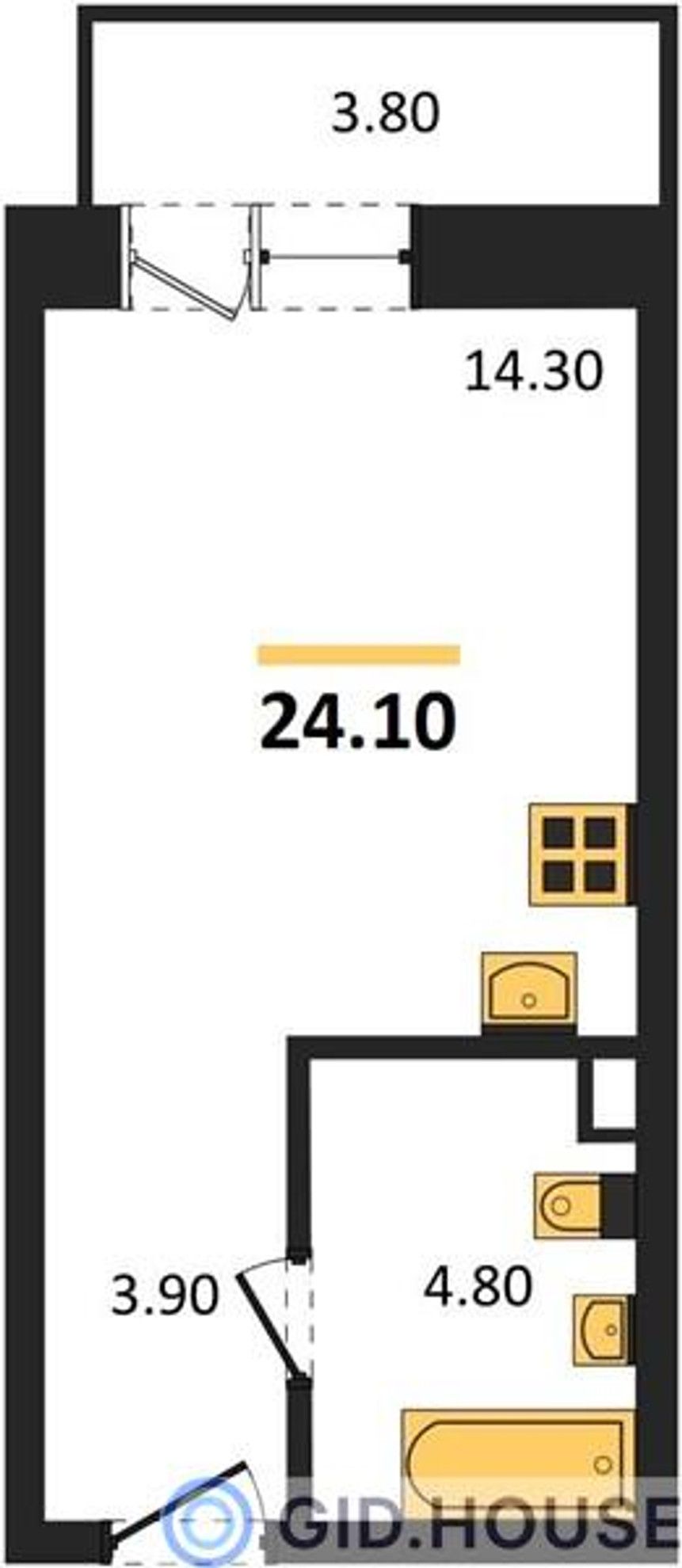 Студия — 24,1 м² 2/22 эт. в SkyPark (Скайпарк)