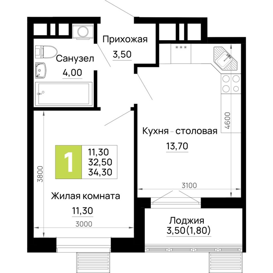 Общая площадь34,3 м²