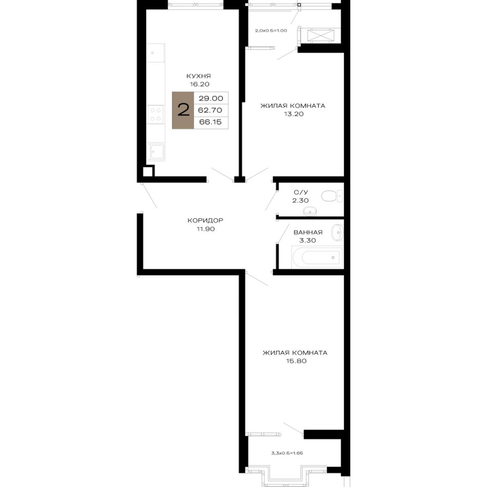 Общая площадь66,15 м²
