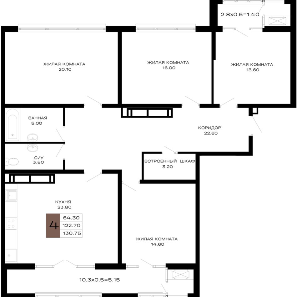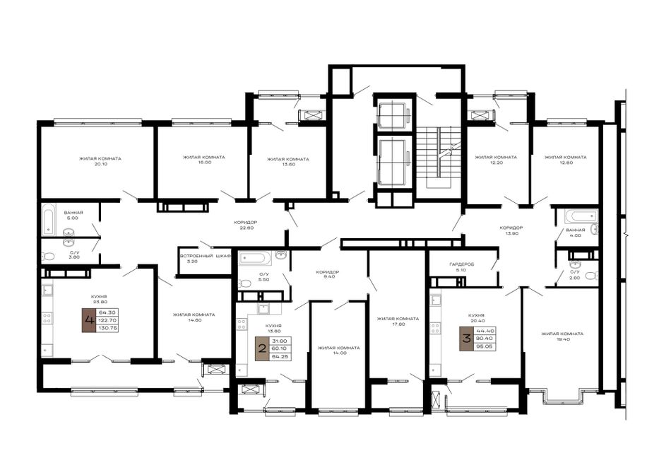 4+ комнатная — 130,75 м² 14/23 эт. в Дом 101