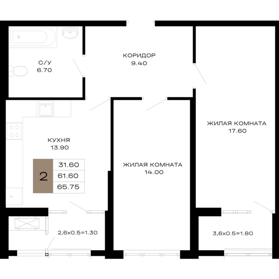 Общая площадь65,75 м²