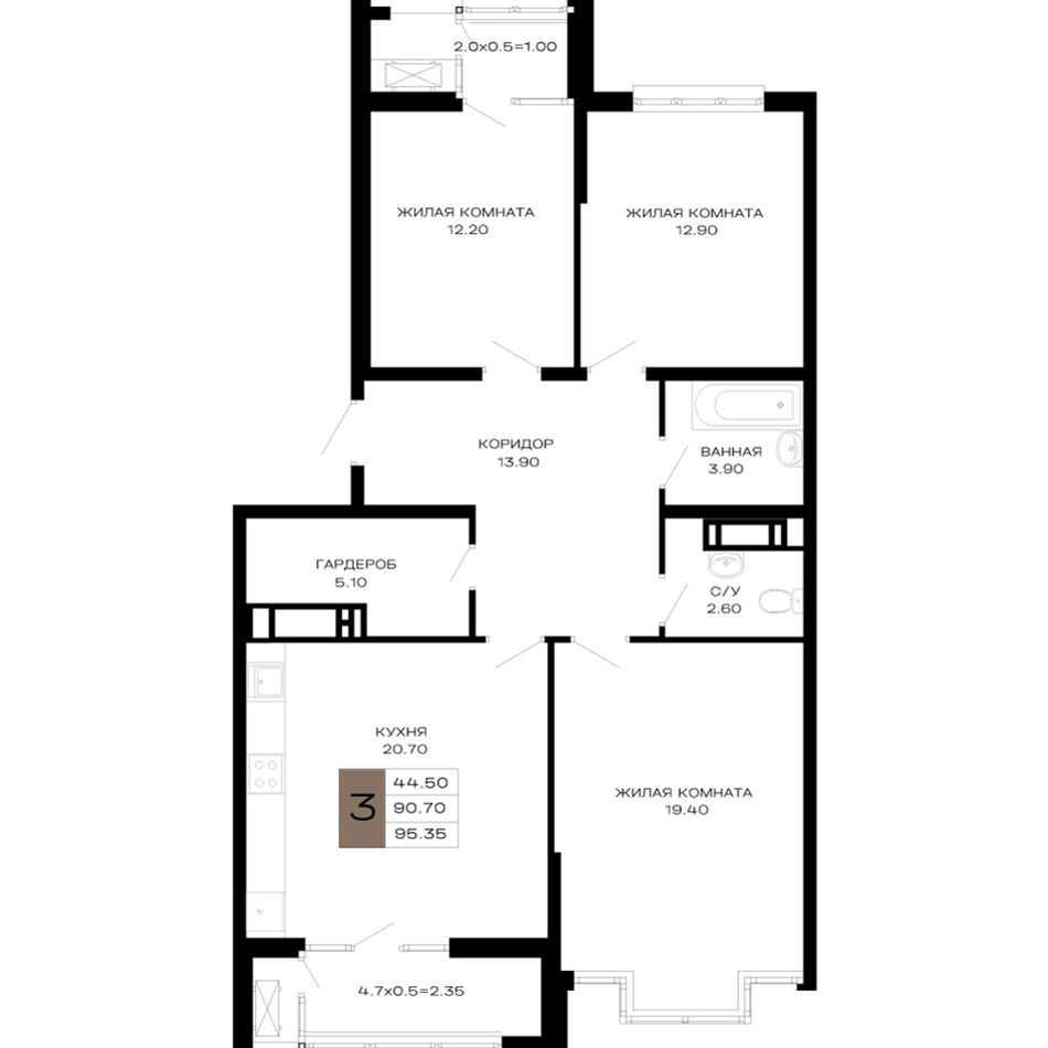 3-комнатная — 95,35 м² 4/23 эт. в Дом 101