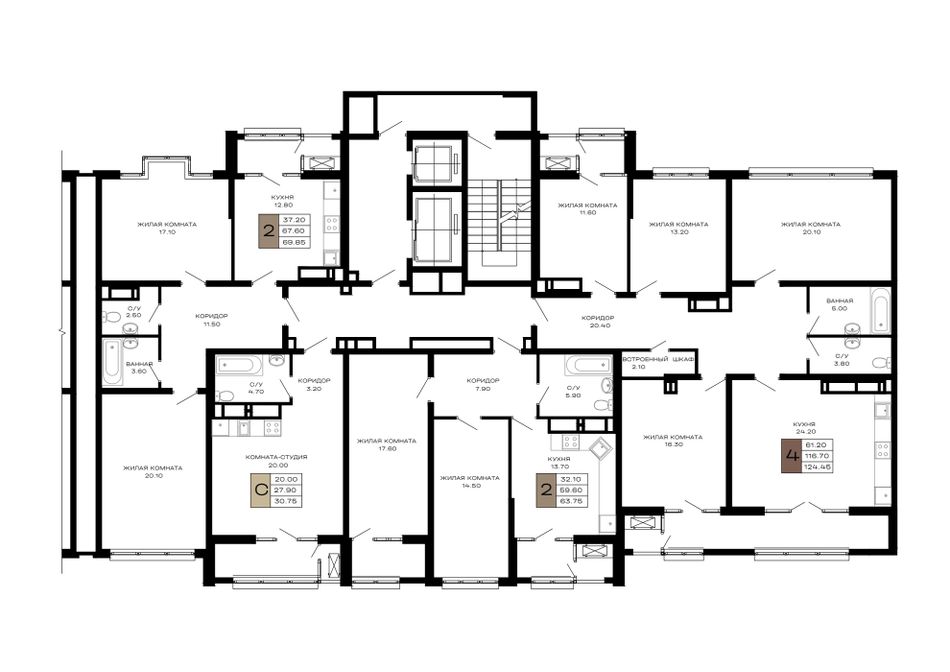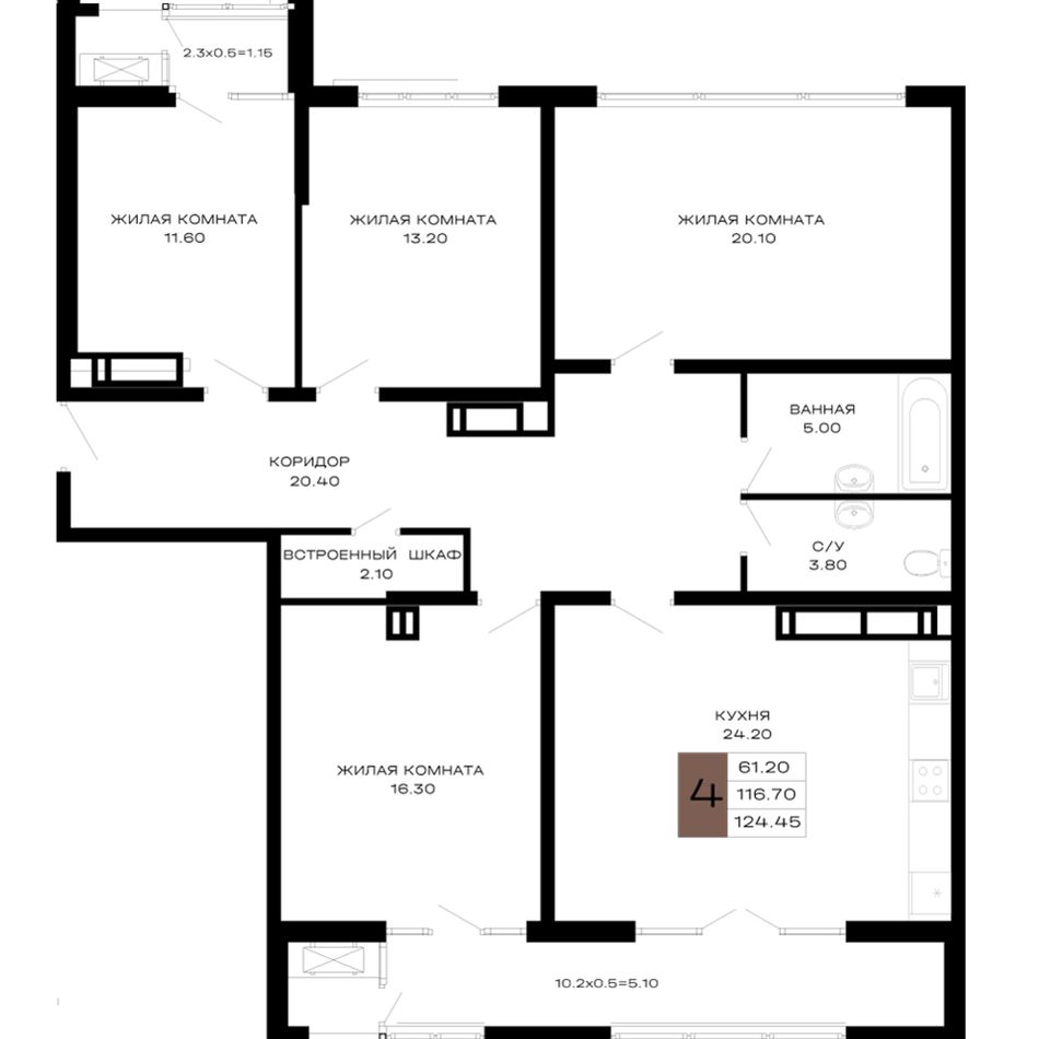 4+ комнатная — 124,45 м² 17/23 эт. в Дом 101