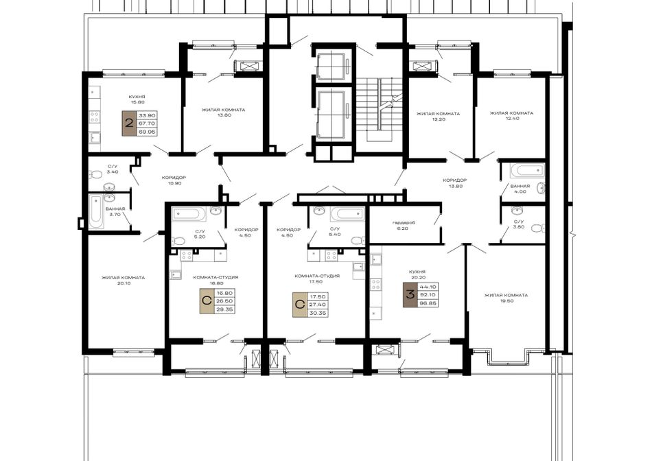 2-комнатная — 69,95 м² 3/23 эт. в Дом 101
